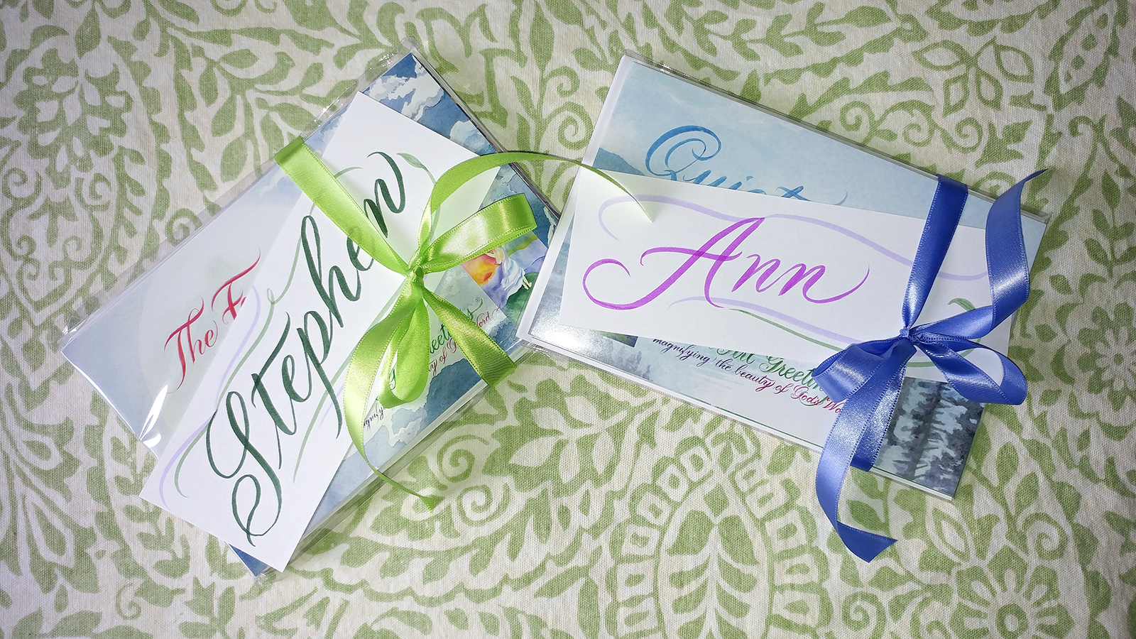 Our mission is to make it easy for you to encourage others in a tangible and lasting way. Whether you are sending just one Art Card or an entire Gift Collection, the beauty and power of God’s Word together with your thoughtfulness is an abundant gift of love! Your words on the inside of an Art Card or the outside of a Collection may be few or many. Simply writing “I’m thinking of you” is often enough. May Father God bless your ministry of encouragement!