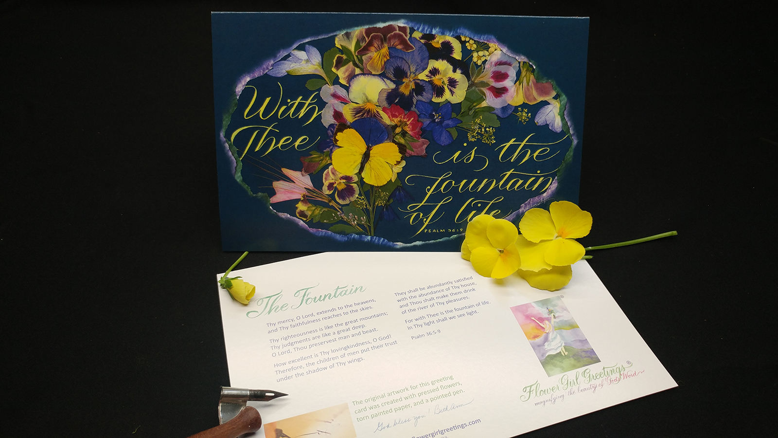 The card-back contains Psalm 36:5-9, “Thy mercy, O Lord, extends to the heavens, and Thy faithfulness reaches to the skies…”