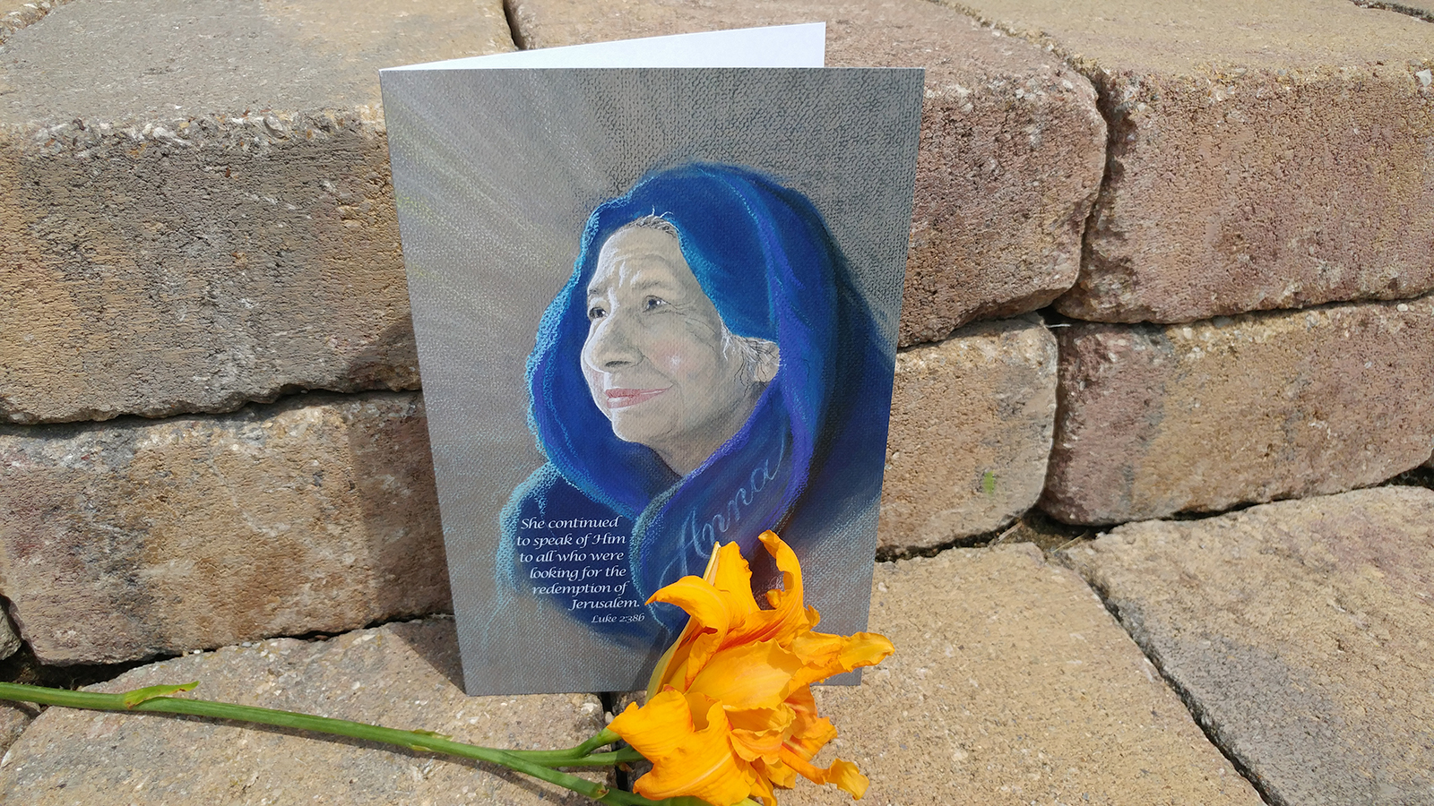 “There was also a prophetess in the temple, Anna the daughter of Phanuel, of the tribe of Asher.” (Luke 2:21-38 on card-back)