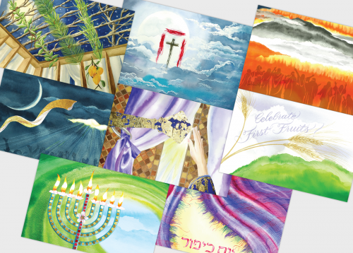 This rich Collection of 8 watercolor art cards celebrates the fulfillment of the Feasts of Israel by Yeshua (Jesus) the Messiah. The artwork on the front of each card was designed to convey Old and New Testament truth. The back of each card includes the story behind each feast and Yeshua's fulfillment of the feast. The inside of each card includes the English and Hebrew names of each feast, Scripture references, the artist’s notes and a celebration greeting!