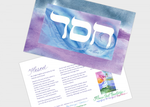 A beautiful Hebrew word study and devotional is on the back of the card. Hesed is defined as the passionate, undeserved, eternal, promised, loyal love of God for His children.