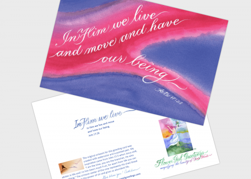 In Him we live Celebrate His life and presence on every occasion!The art cards measure 5½ by 8½ inches, are blank i.. Product #: 4P-INHIMWELIVE based on 0 reviews Regular price: $0.00 $0.00