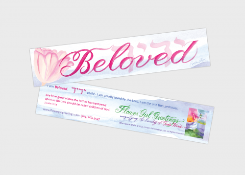 Front – “Beloved” in watercolor script with Hebrew letters.