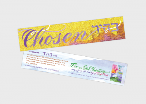 Front – “Chosen” in watercolor script with Hebrew letters.