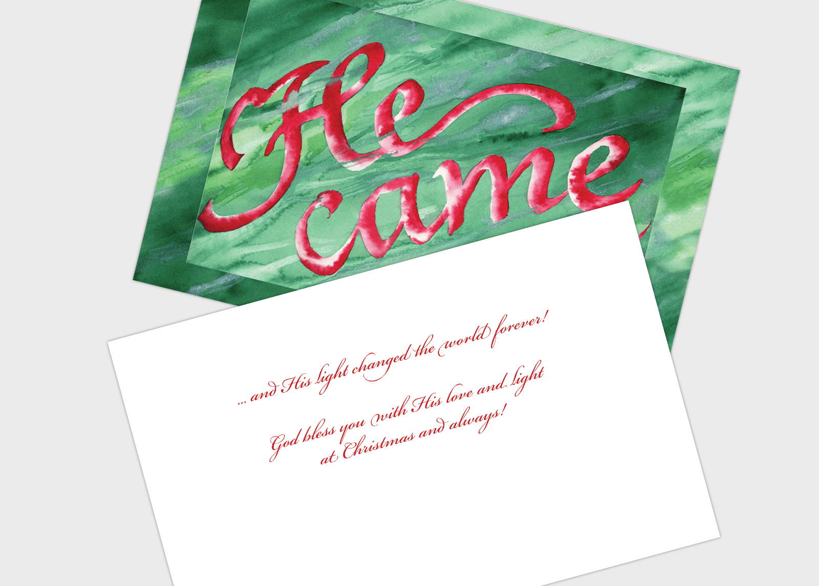 Inside greeting – …and His light changed the world forever! God bless you with His love and light at Christmas and always!