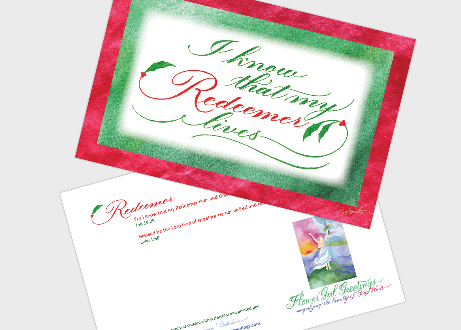 Card front text – "She continued to speak of Him to all who were looking for the redemption of Jerusalem." Luke 2:38b