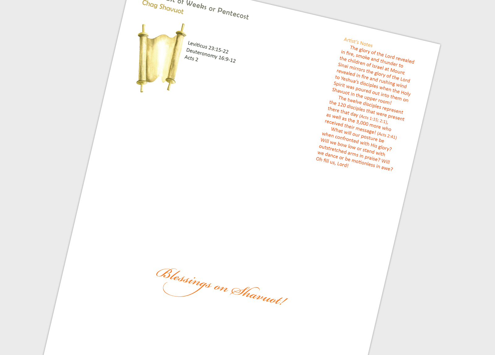 Each Collection includes a colorful insert that explains the timeline of the feasts according to the Hebrew lunar calendar.
