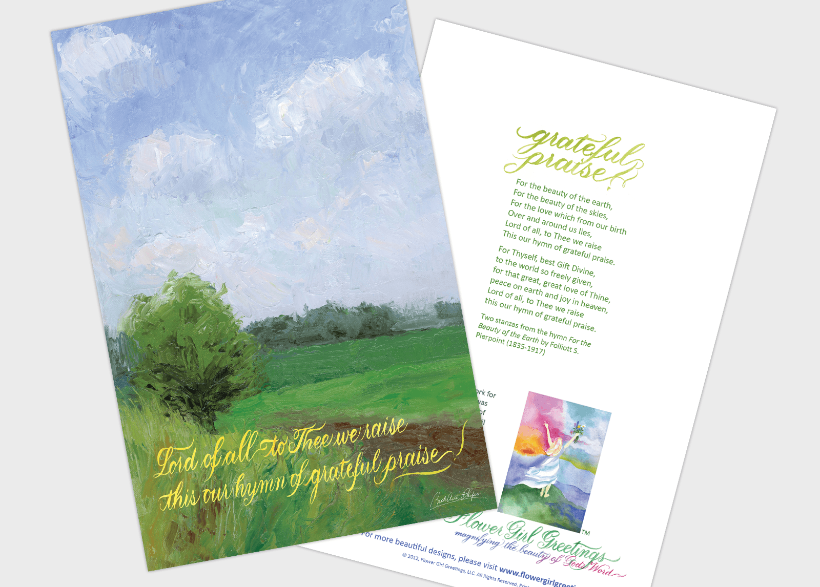 Back words: Two stanzas from the hymn For the Beauty of the Earth.