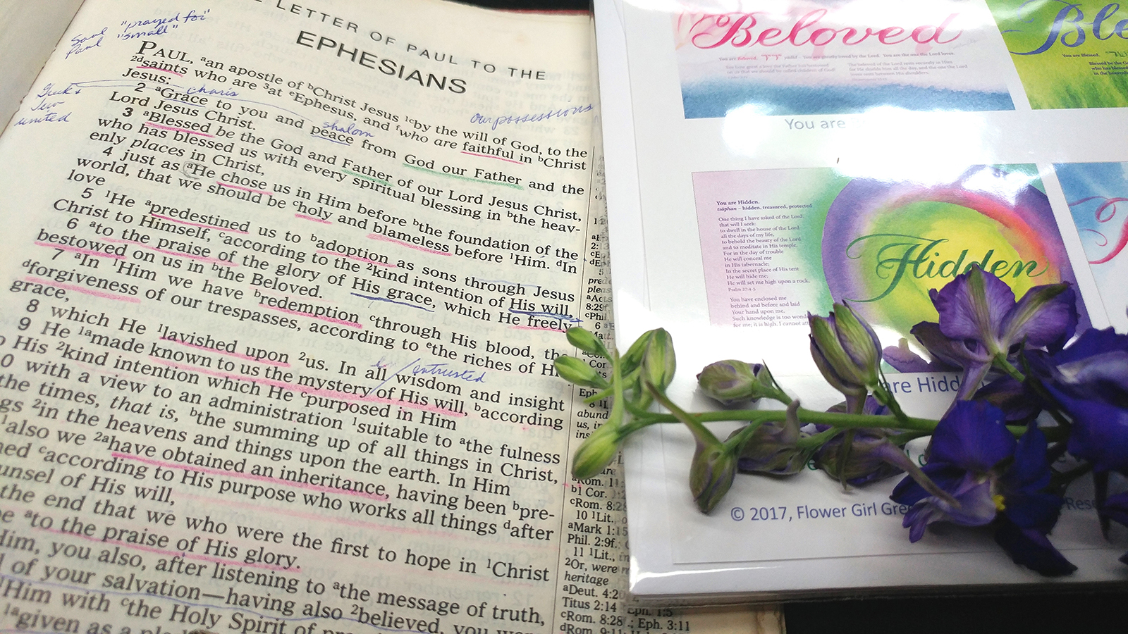 9 Flower Girl Greetings bookmarks have been created that can be included in these cards for no extra postage. They are Beloved, Blessed, Chosen, New, Strengthened, Sealed, Hidden, Reflector, and Redeemed, and you may find them here where you can scroll down to find them!